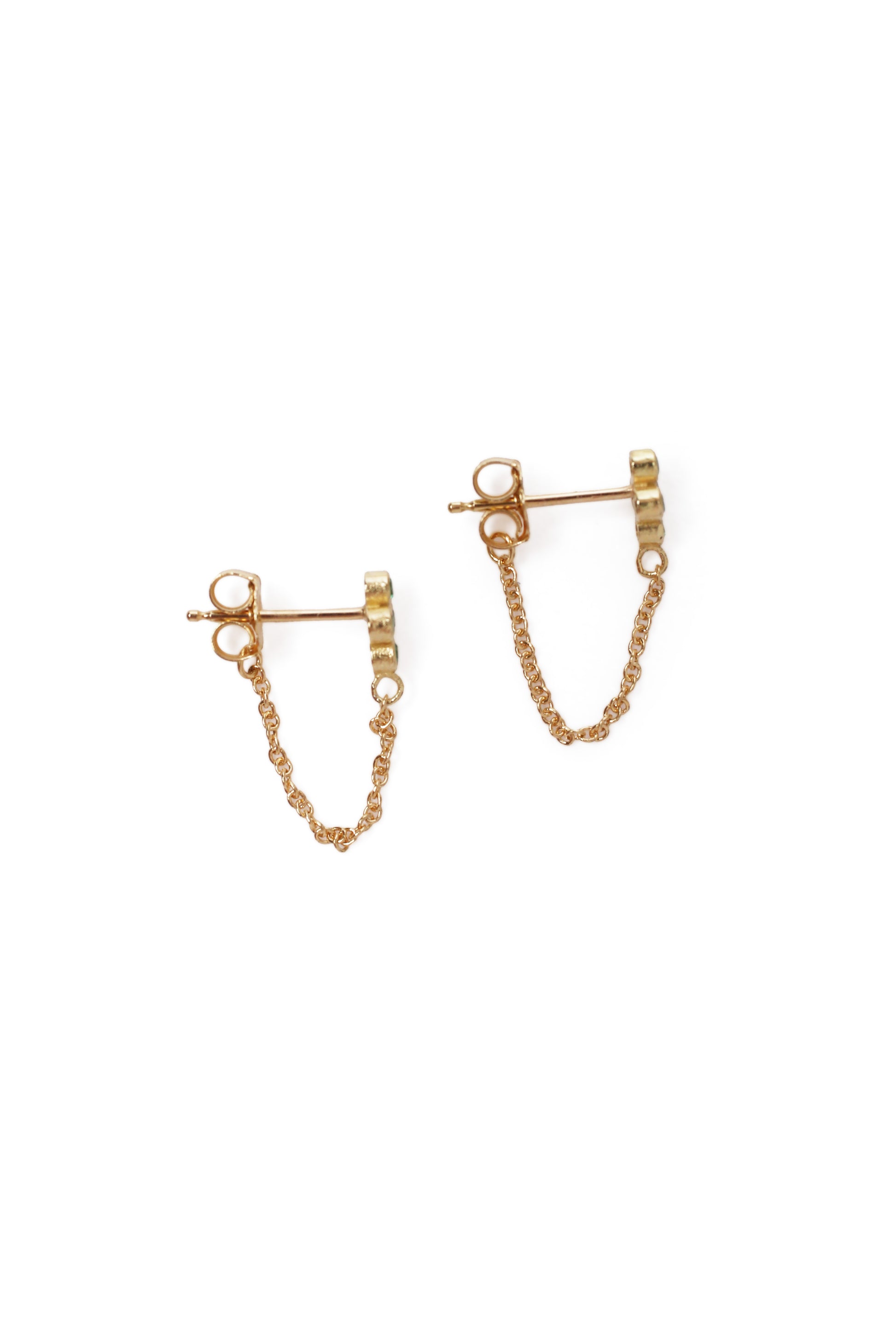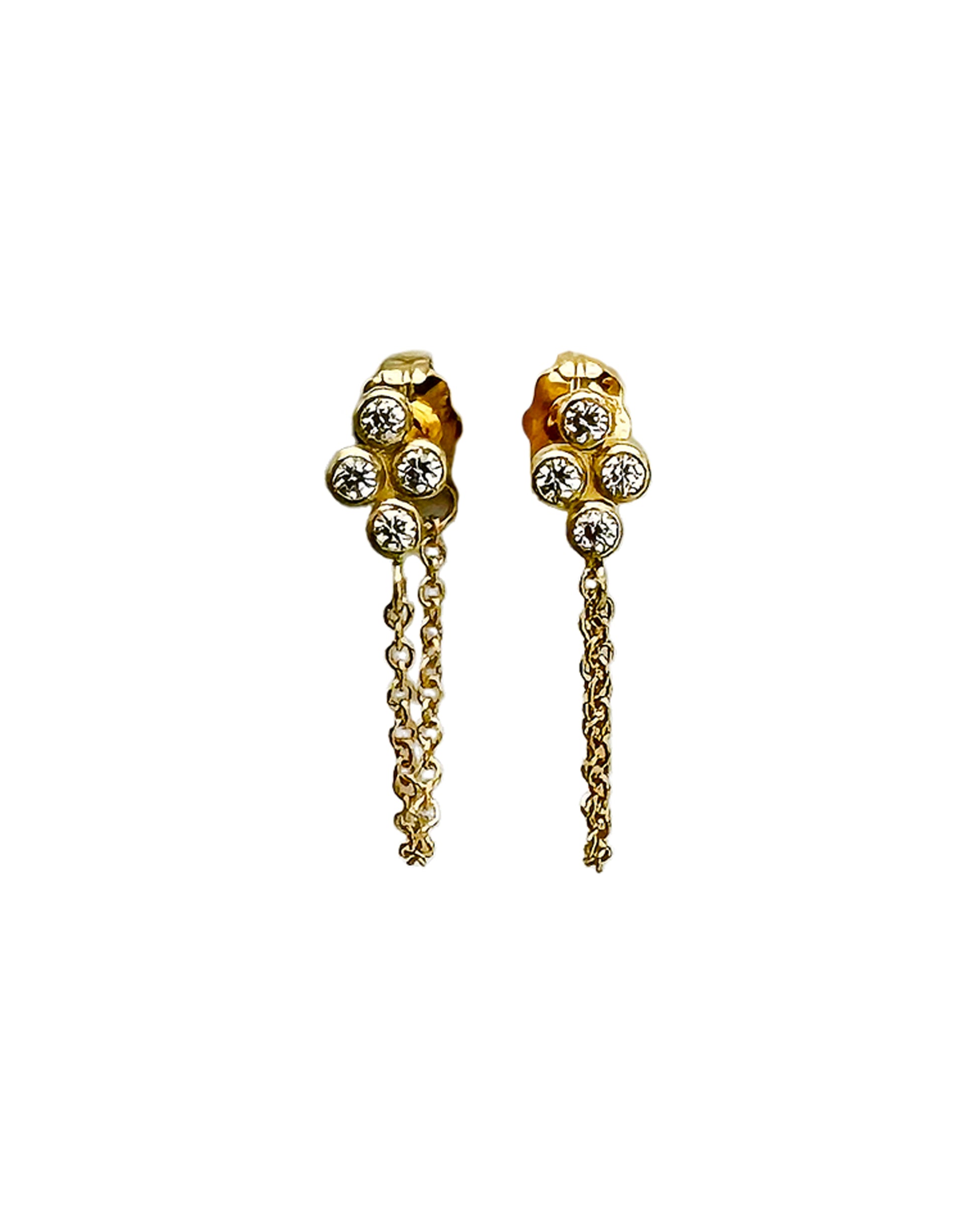 Elevate your style with our 4 Clover Diamond and Chain Stud Earrings, where a delicate chain elegantly descends from the clover, adding a touch of movement and intrigue. This captivating design blends classic charm with modern sophistication, featuring a universally recognized clover motif that symbolizes good fortune. With a simple yet striking aesthetic, these earrings effortlessly complement any outfit, perfect for those who appreciate timeless elegance with a contemporary twist.
