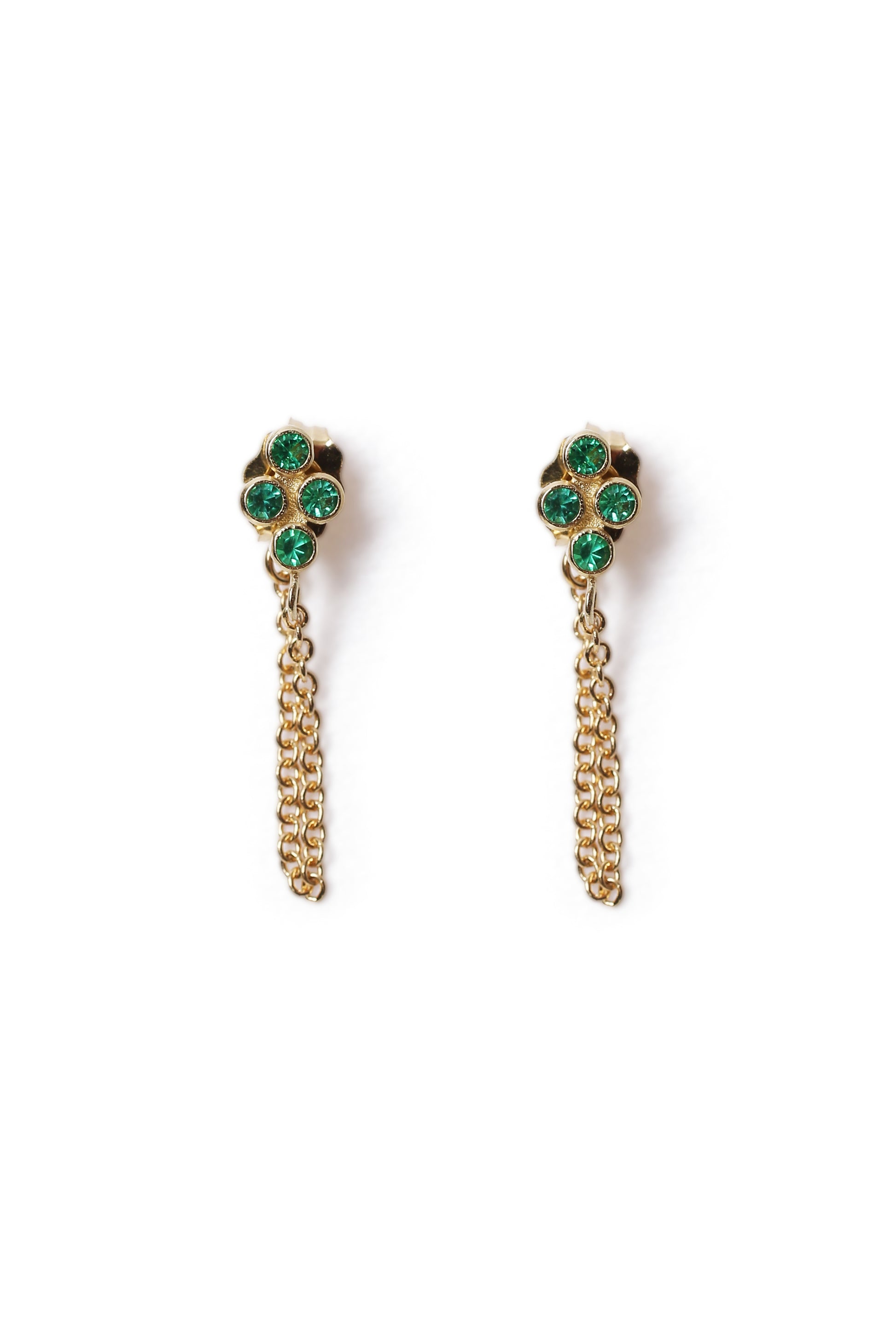 18 KT Gold 4 Clover Emerald Chain Earring