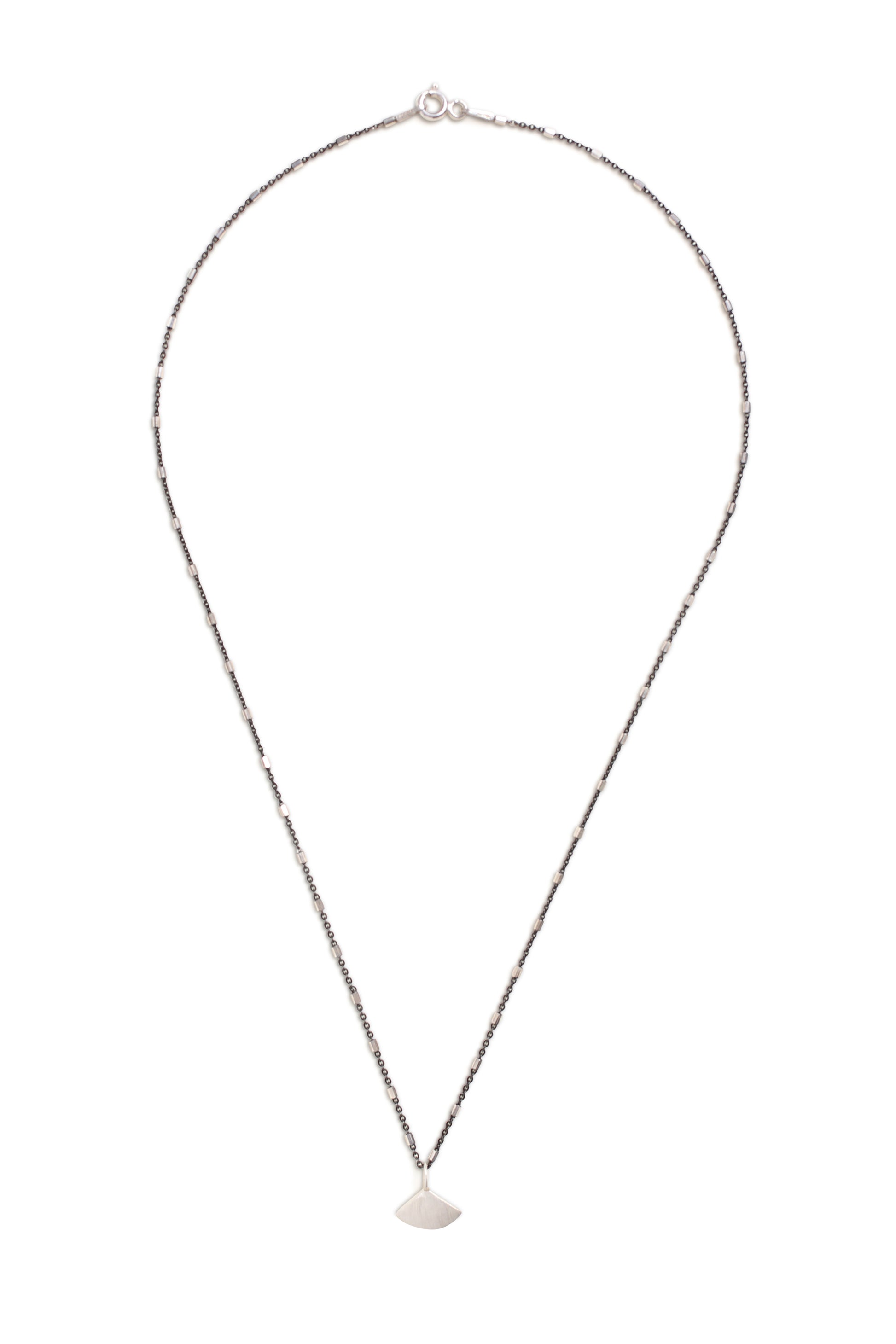 Inspired by the intricate shapes found in nature, this unique necklace is crafted from a natural sand pebble. The pebble's organic form has been carefully transformed into a delicate fan shape, showcasing the beauty and wonder of the natural world.