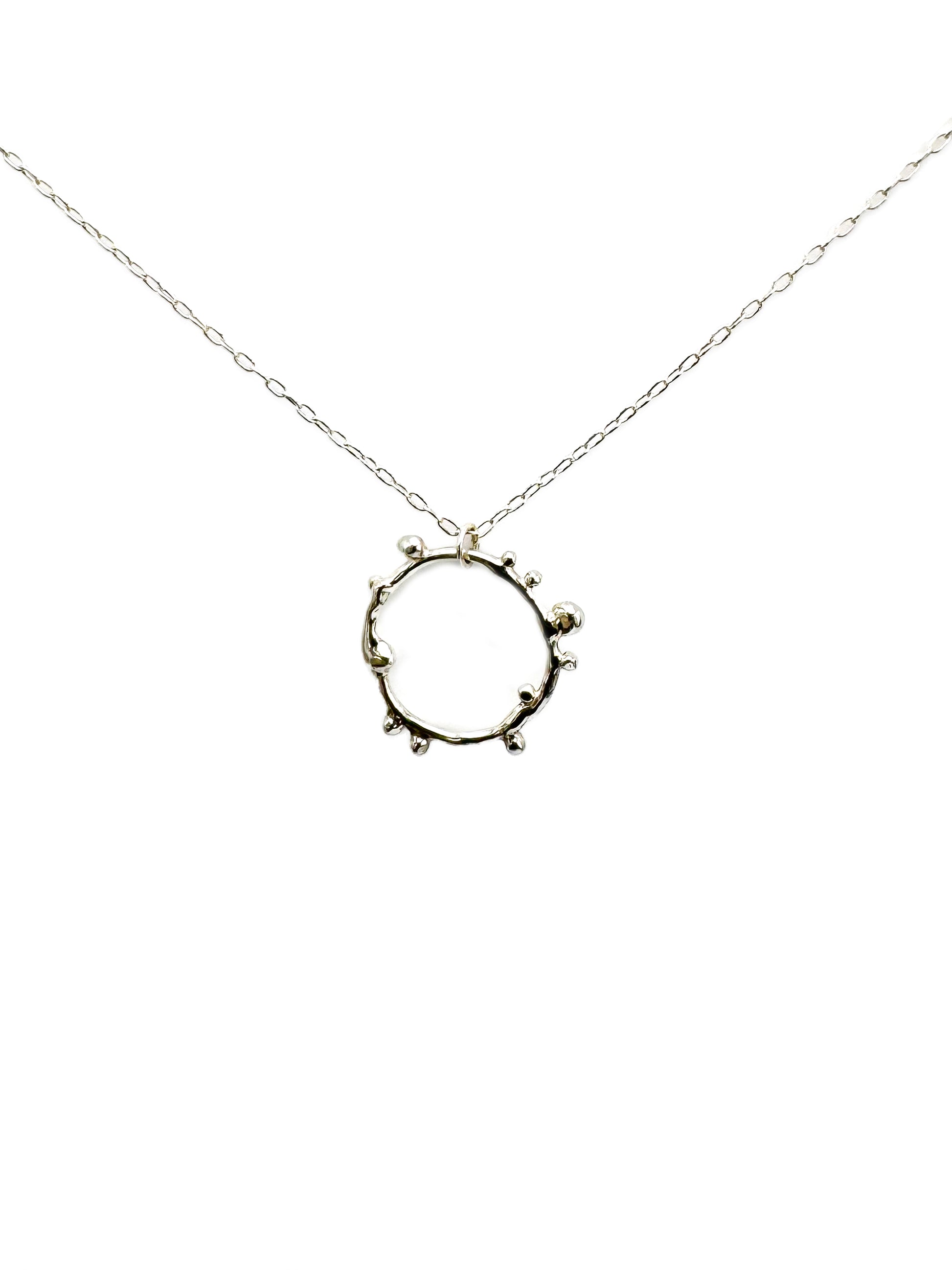 This fused circle pendant captures the essence of organic flow. form represents a symbol of eternity and balance, creating a piece that is both ethereal and captivating.